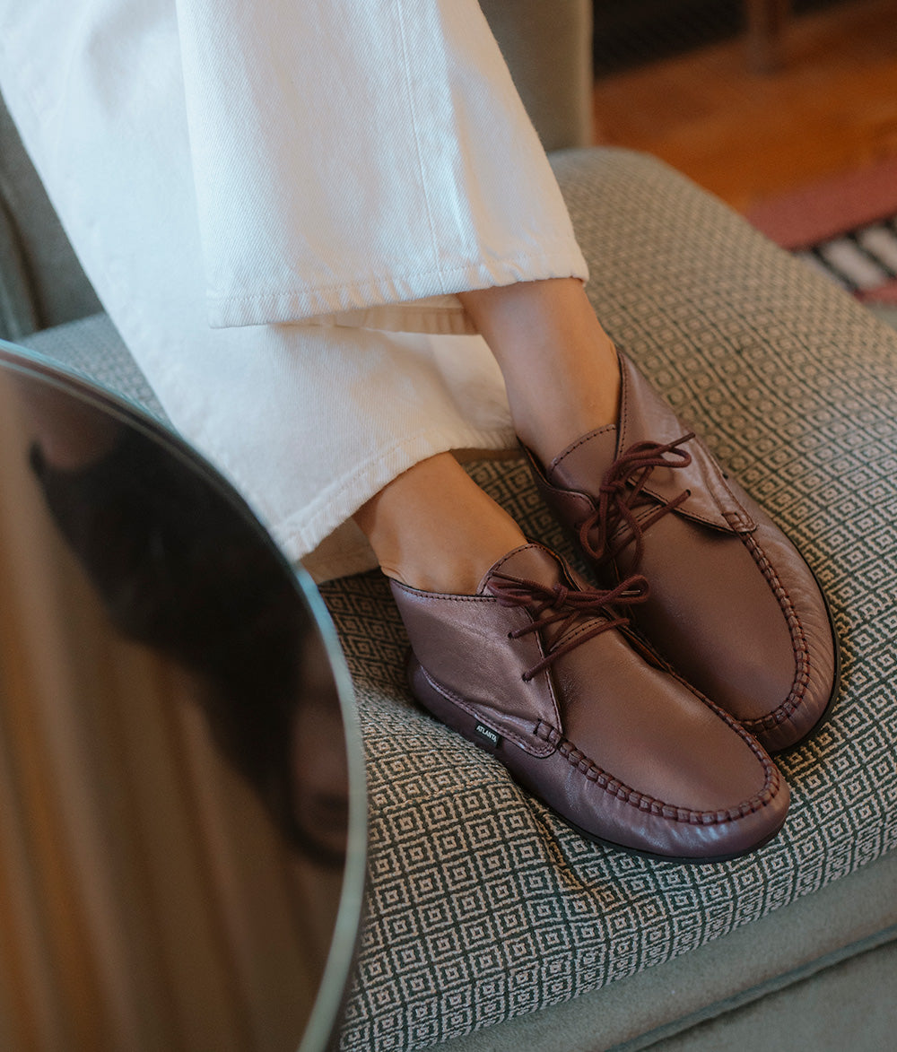 As botas são uma versão do modelo de mocassin com suporte acima do calcanhar, proporcionando um conforto extra nas estações mais frias.
