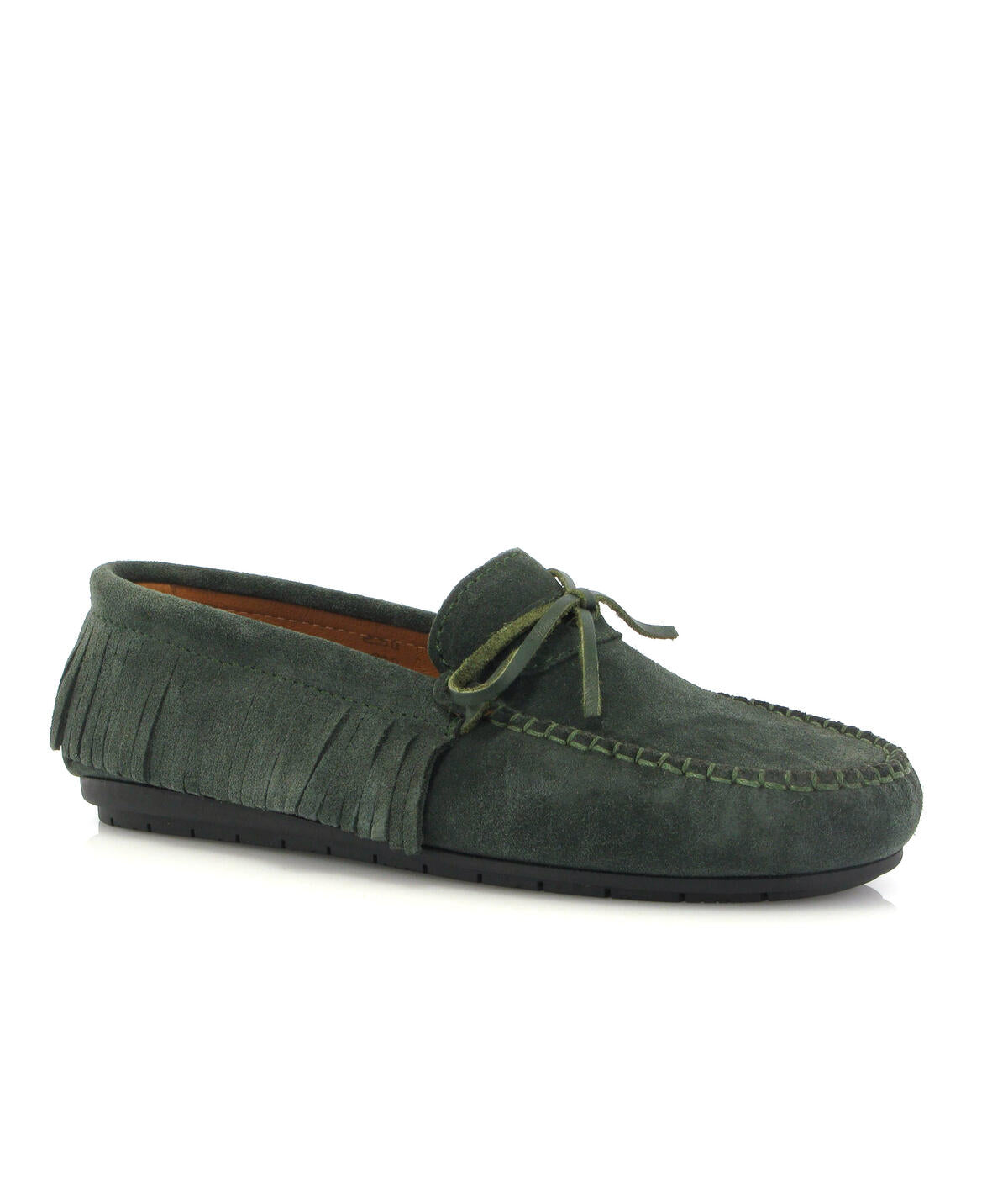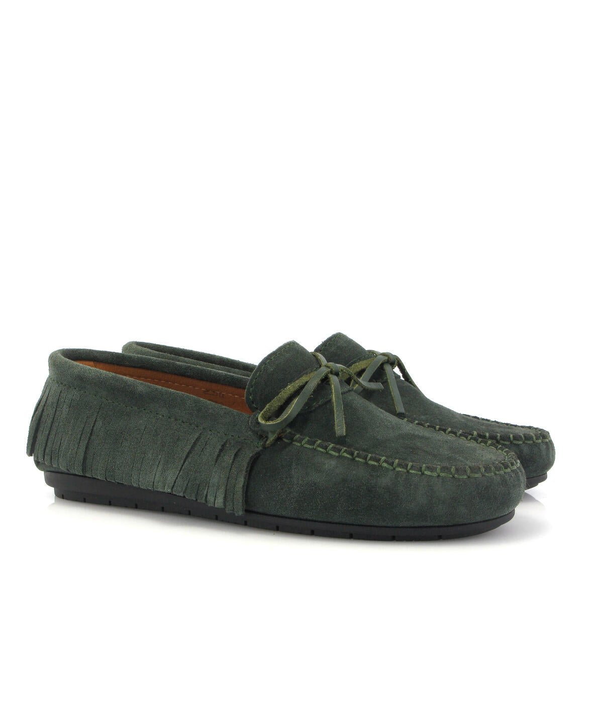Mocassins com franjas - camurça verde escura