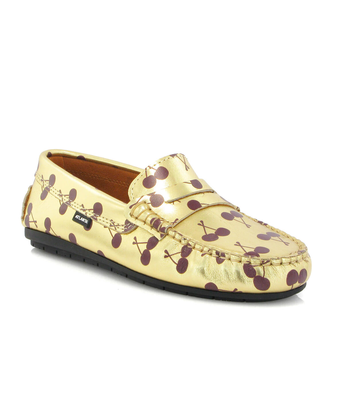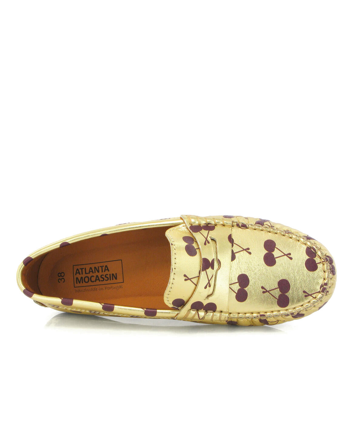 • Mocassins Originals com travessão em pele estampada dourada cerejas
