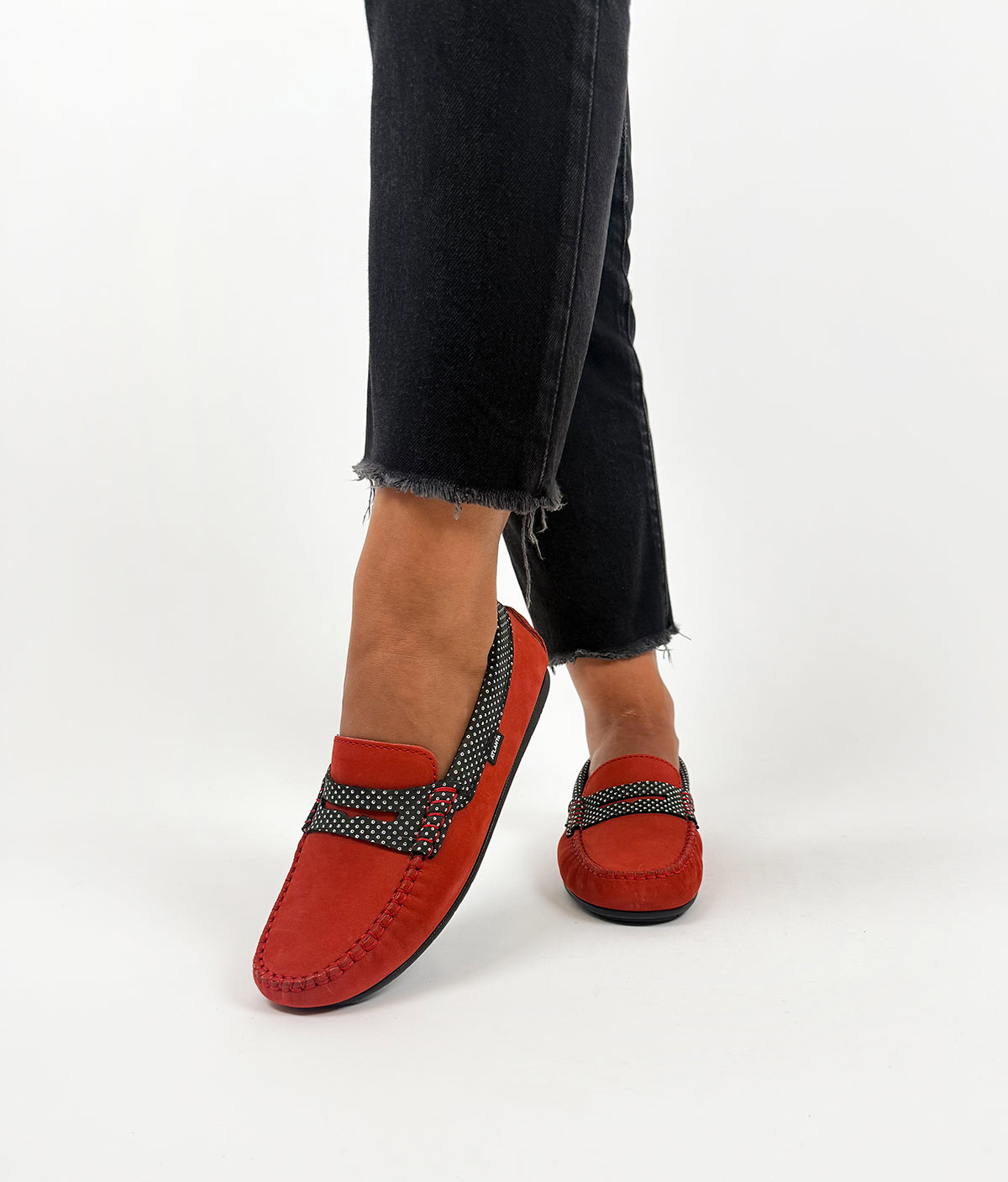 - Mocassins Originals em pele nobuck vermelha com travessão polka-dots a contraste