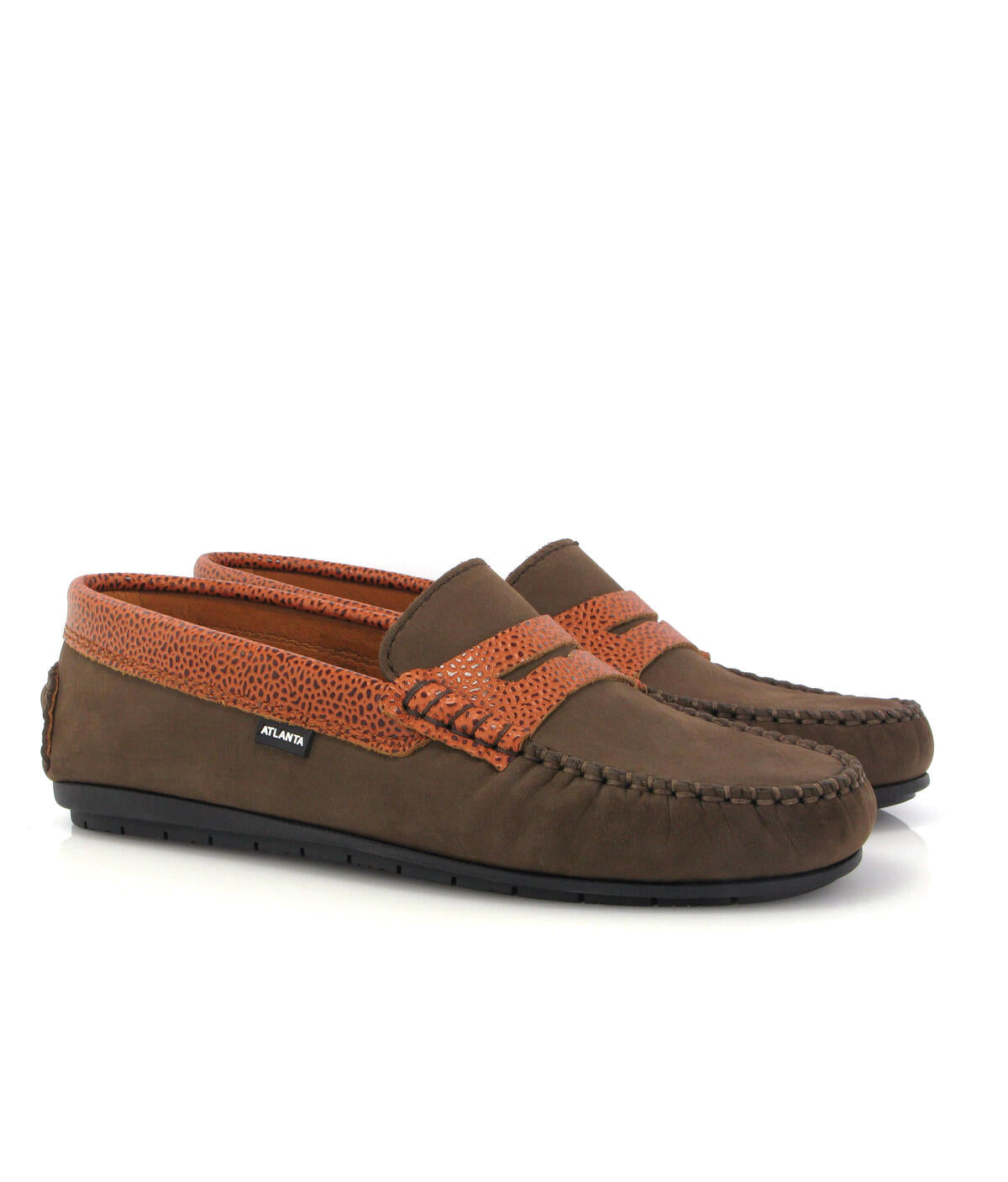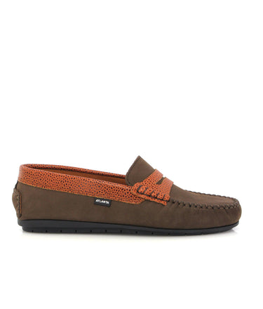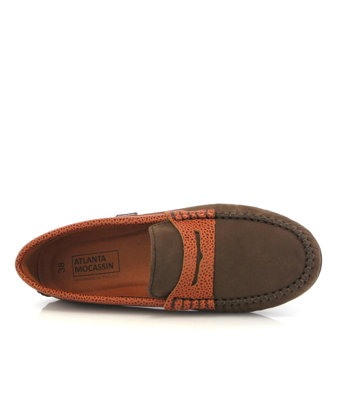 - Mocassins Originals em pele nobuck castanha com travessão camel a contraste
