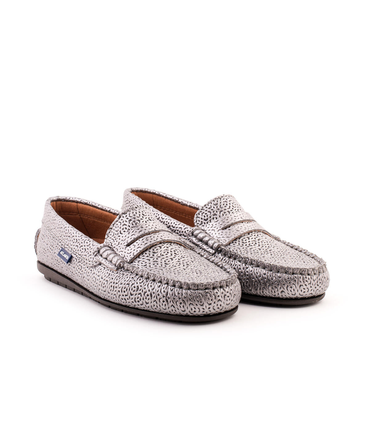 - Mocassins Originals com travessão em pele metalizada com motivo arabesco