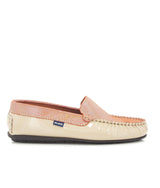 - Originals 015 Plain Moccasins in beige patent leather with contrasting vamp in orange shiny leather