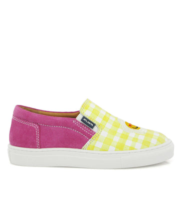 Zapatillas Slip On - ante fucsia y vichy amarillo