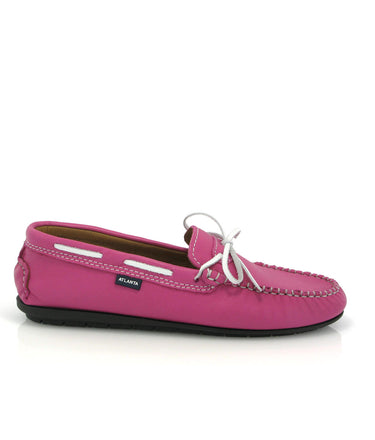 - Mocasines Originals en piel nappa fucsia con lazo blanco