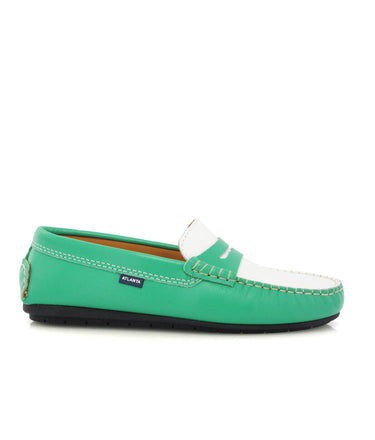 - Mocasines Originals con detalle antifaz en piel lisa verde giada y pala blanca