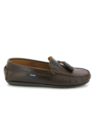 Mocasines Originals con Borlas. Costuras hechas a mano, forro de piel y suela de goma de Atlanta Mocassin. Se entrega con una bolsa de viaje.
