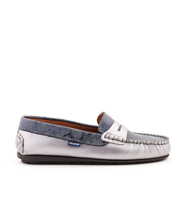 - Mocasines Originals con detalle antifaz en piel plateada y pala en contraste