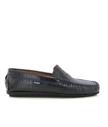 - Mocassins Originals com travessão em pele azul escura efeito crocodilo