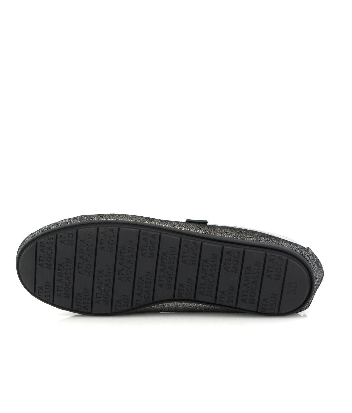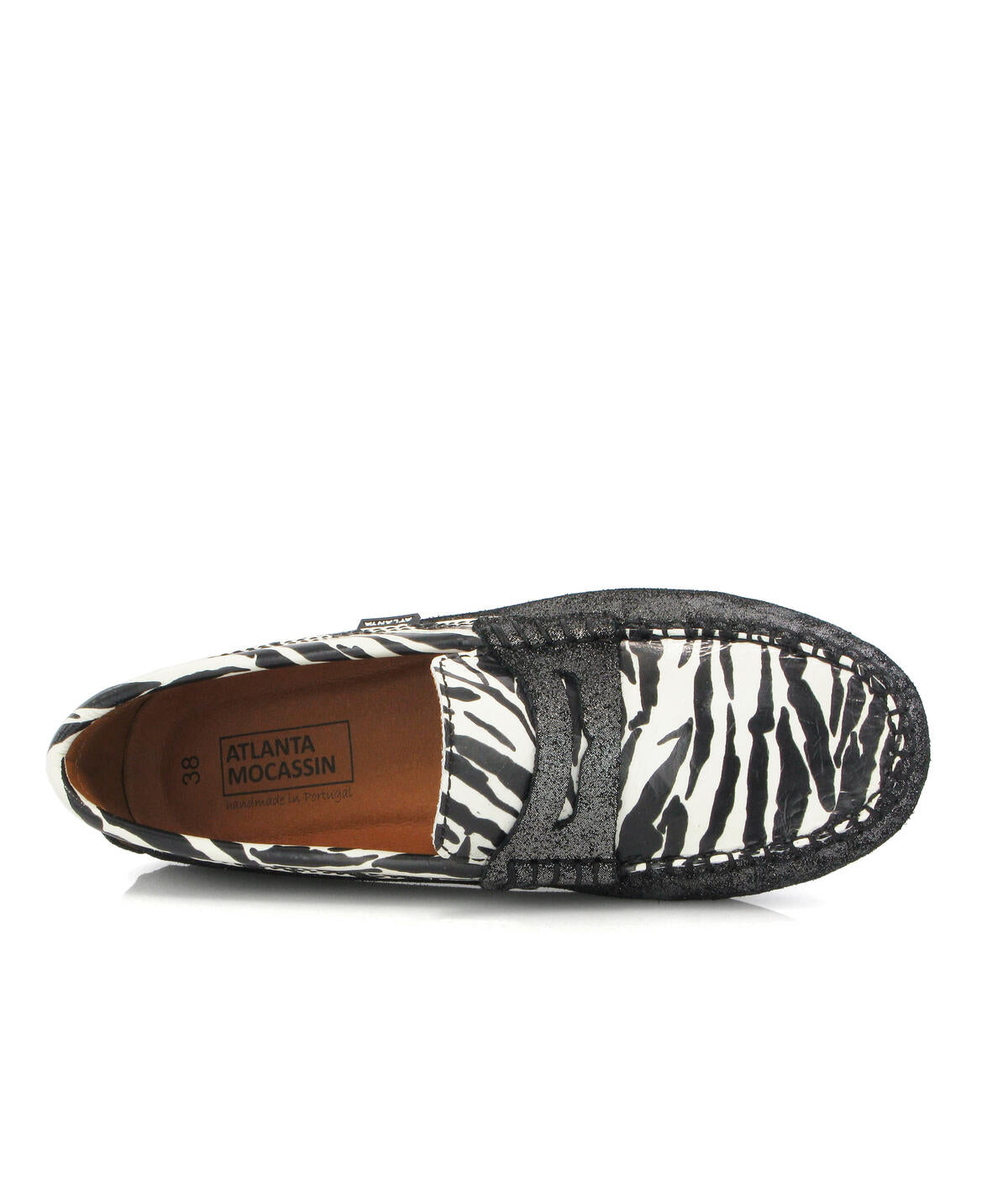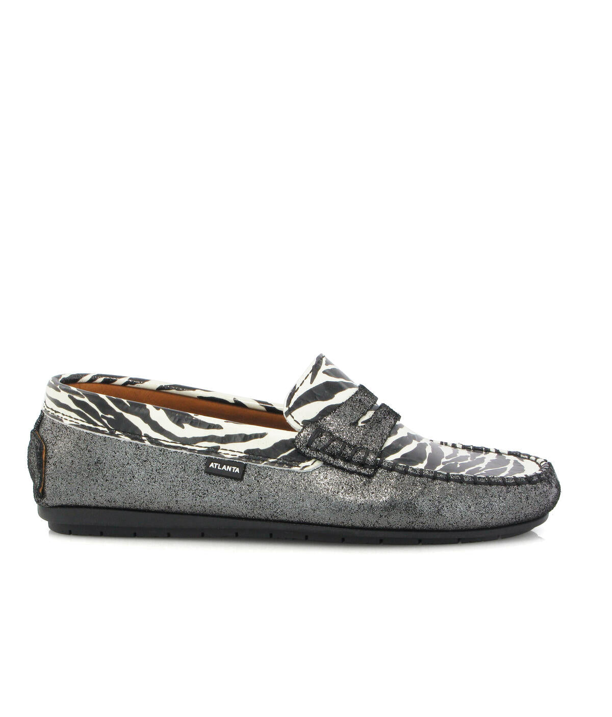 • Mocassins Originals em pele cinza efeito glitter e pala com estampado zebra a contraste