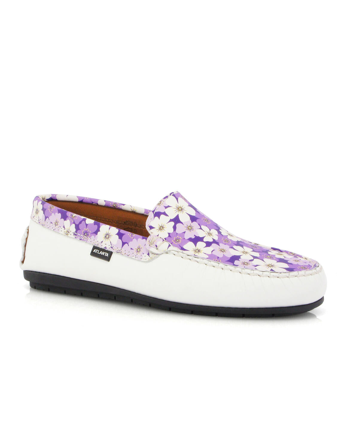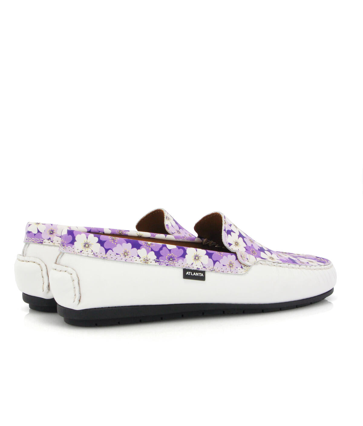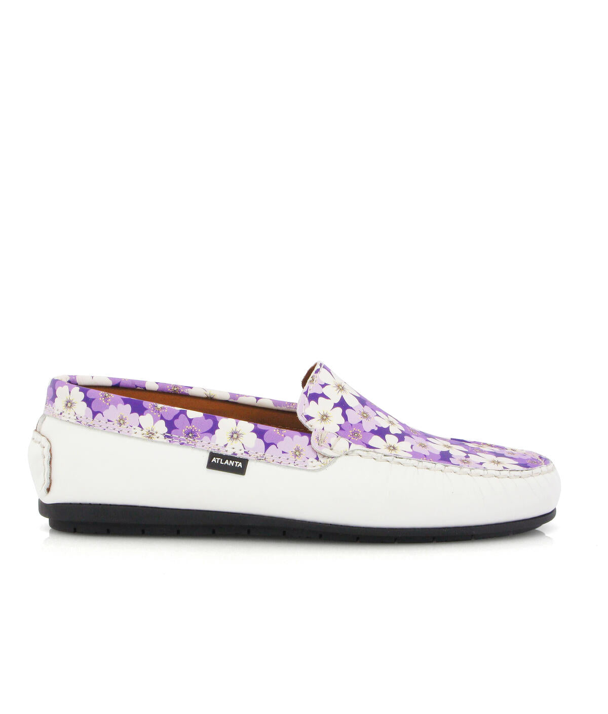 - Mocassins Originals com pala lisa em pele branca com estampado flores violeta