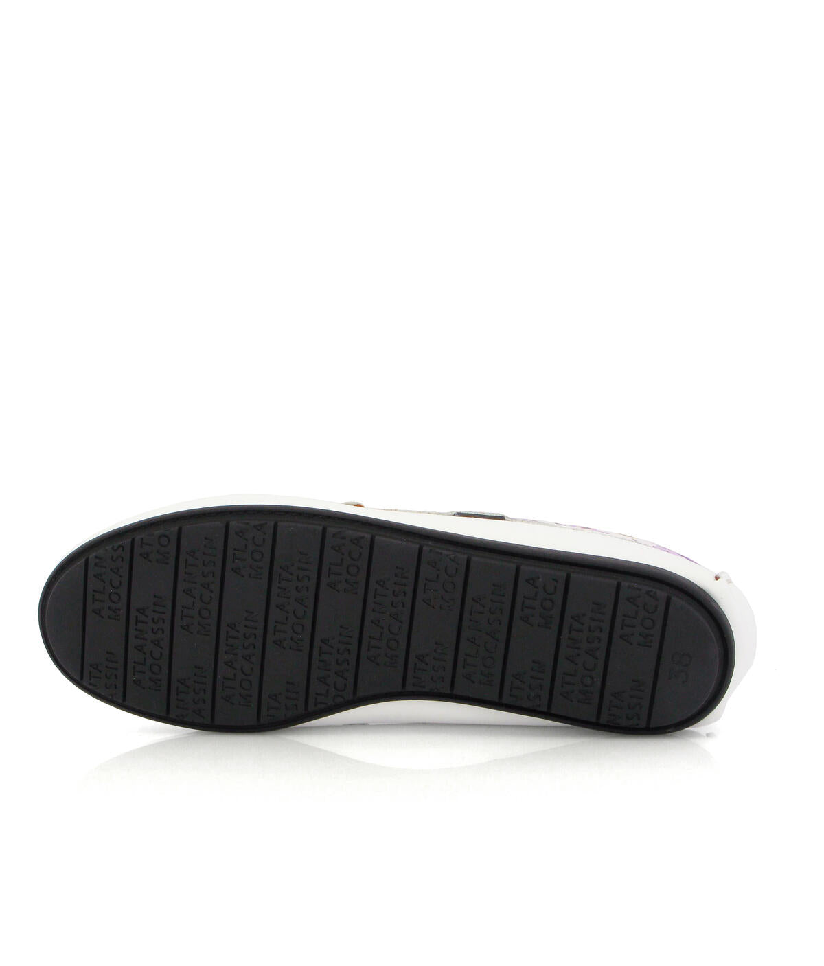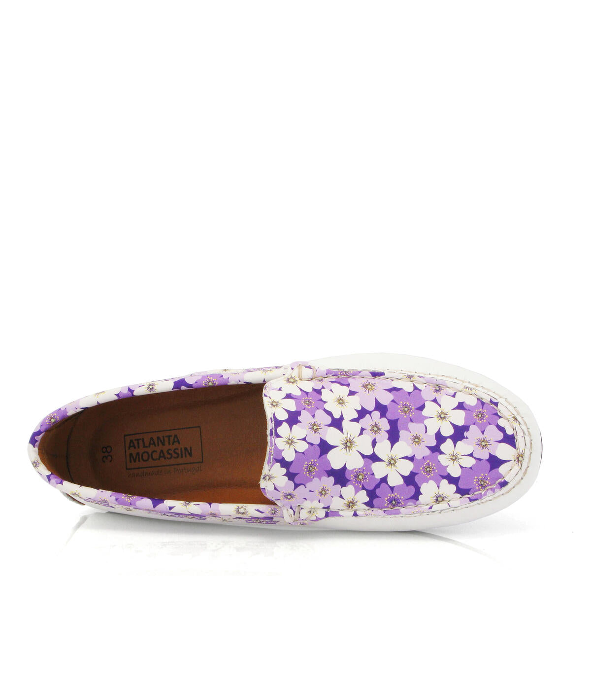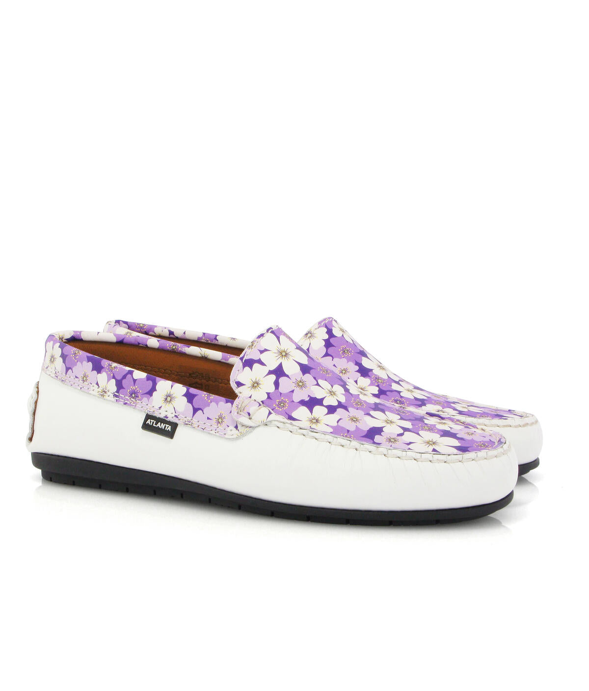 - Mocassins Originals com pala lisa em pele branca com estampado flores violeta