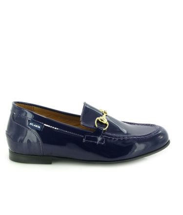 - Loafers Teresa com aplicação metálica em pele envernizada azul marinho